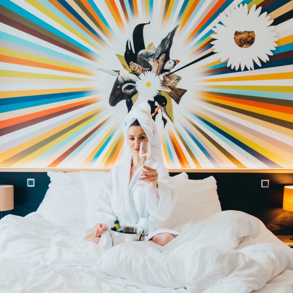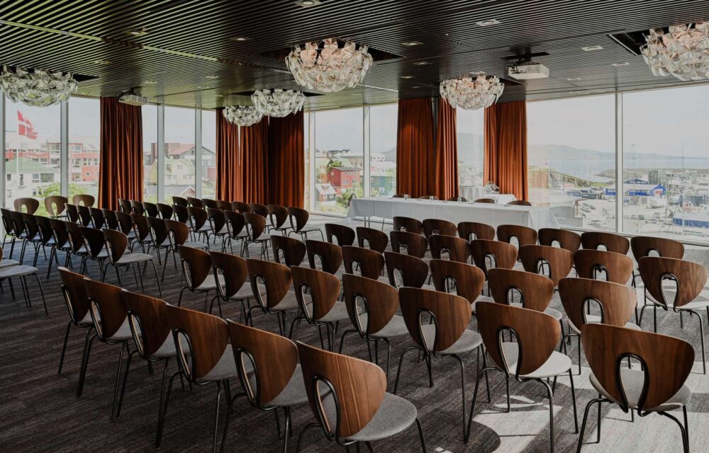 Vi har 124 miljøvenlige dobbeltværelser på 18m2 og 38m2. På værelset har du en kaffemaskine, fjernsyn med Chromecast og brede senge, samt andet inventar af høj kvalitet. Hvert værelse er indrettet med indragelse af færøsk kultur, arkitektur, historie og produkter. Den berømte færøske maler Edward Fuglø har prydet alle hotelværelserne med det specielle værk ”Landmark”. Besøg os og få en skøn og miljøvenlig oplevelse.