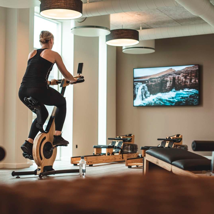 Du kan bruge træningslokalet gratis. Du finder træningslokalet mellem vores hot tubs og sauna, hvor du kan slappe af efter en god træning.